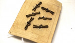 set 6 ball shaped Connemara marble buttons, on original card. -