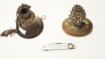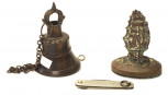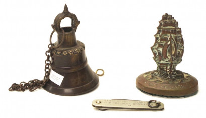 comprising a James Clark Ship chandler pocket knife, a metal bell, and a Cutty-Sark paperweight -