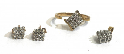 Lot Description:A 9ct Yellow Gold Diamond Ring, Matching Stud Earrings & Pendant