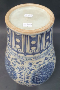 painted with lotus flowers, unmarked, height: 33 cm. -