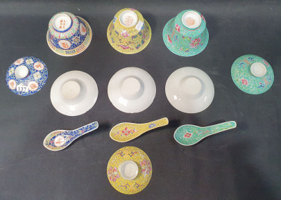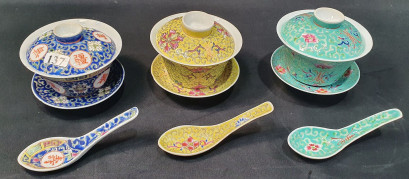 Lot Description:Three Chinese Enemalled Covered Bowls