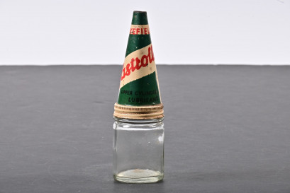 Lot Description:CASTROL WAKEFIELD: A small glass oil bottle with Castrollo Upper Cylinder Lubricant tin oil pourer