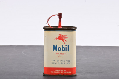 Lot Description:VACUUM OIL CO: A four fluid ounce Mobiloil Handy Oil tin with Pegasus still on plastic cap
