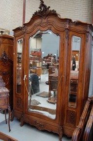Lot Description:Antique French Louis XV style three door walnut armoire