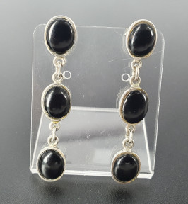 Lot Description:A Pair of Three-Tier Onyx and Silver Earrings