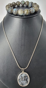on silver chain (10.9g). Together with a labradorite bead bracelet. -