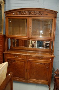 Lot Description:Antique French Art Nouveau carved walnut two height buffet