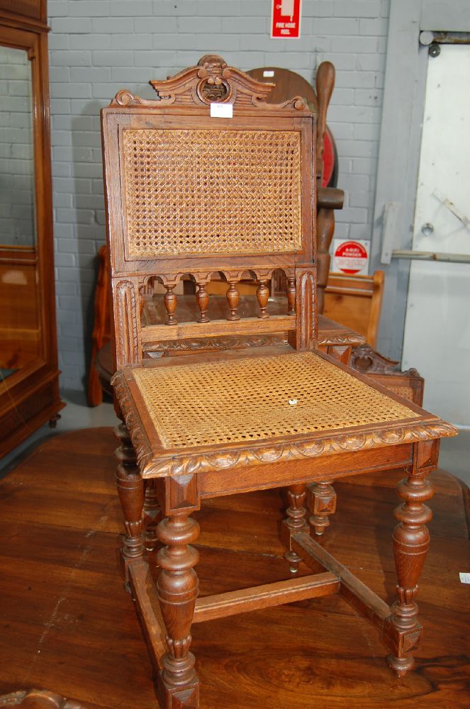 Lot Description:Set of six antique French Henri II style carved oak chairs