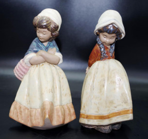 including: Standing Girl with Basket, and Standing Girl with hands behind her, each marked to base, (height 21cm approx, each). -