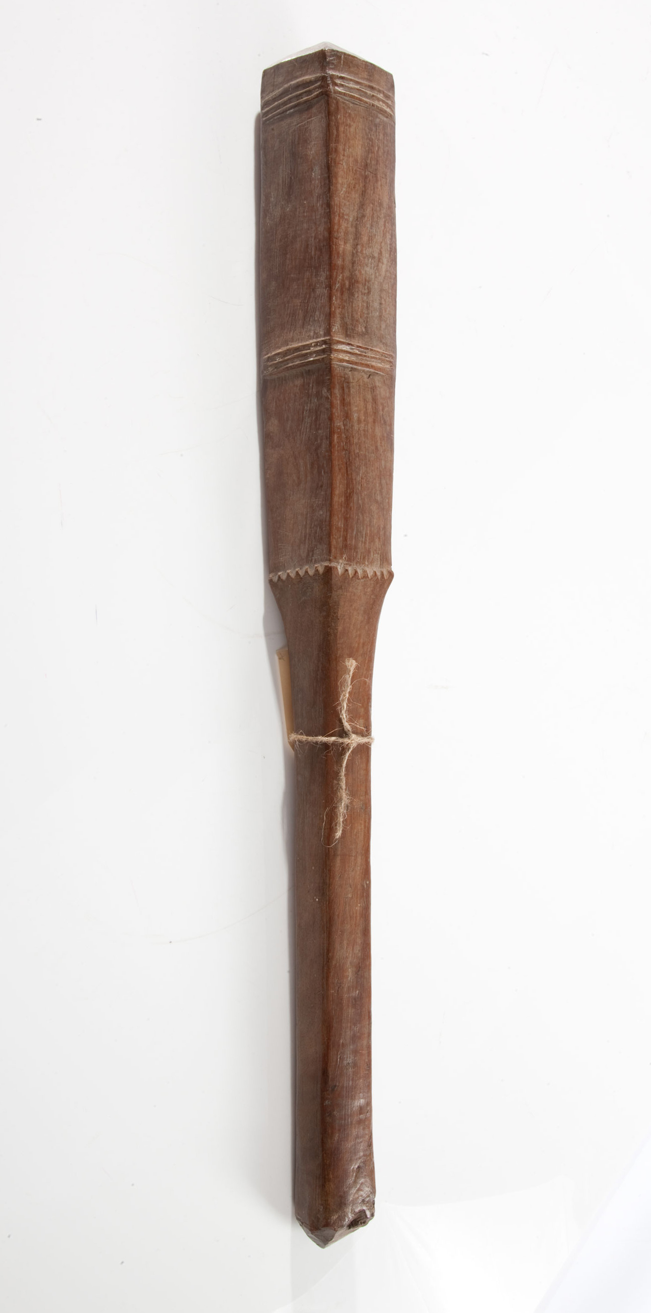 A heavy club with raised decoration to head, light brown patina.Tikopia, Solomon Islands.