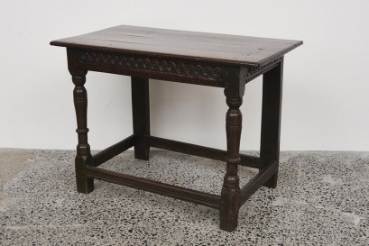 the rectangular top above a carved frieze, on four legs joined by stretchers