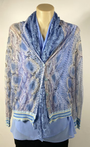 Lot #5139 - Ermanno Scervino, Italy: Pale Blue Python Print & French Blue Lace Cotton Blend Translucent Jacket