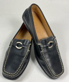 Lot Description:Tod's, USA: A Pair of Black Loafers, White Top-Stitch Detail & Silvertone Hardware