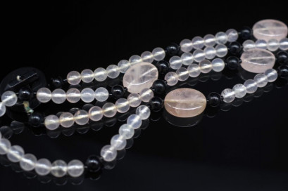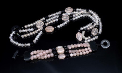 Lot Description:Onyx & rose quartz beaded bracelet and necklace