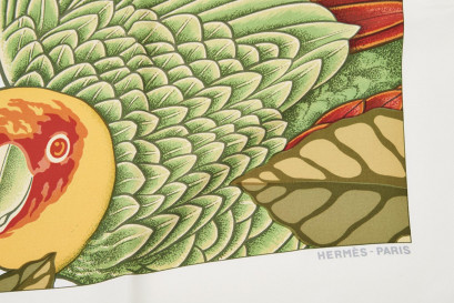 Lot #273 - Hermes, Salvatore Ferragamo Two Silk Scarves 'Les Perroquets' by Joachim Metz
