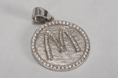 Lot Description:9ct White Gold and Diamond 'McDonald's' Pendant