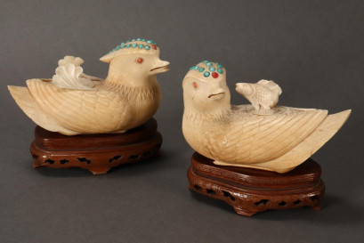 Lot Description:Good Pair of Chinese Carved Ivory Mandarin Duck Censers