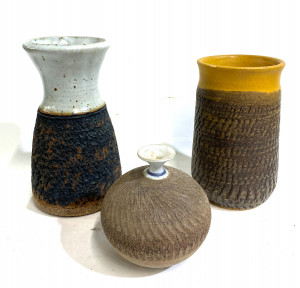 Lot #1803 - Three Studio Glazed Earthenware Vases with Stipple Detail