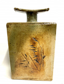Lot Description:A Japanese Ikebana Style Earthenware Vase with Bamboo Motif