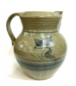 Lot Description:A Tall Glazed Earthenware Jug with Blue Floral Detail