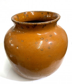 Lot Description:A Brown Glazed Terracotta Floor Vase with Stipple Spot Detail