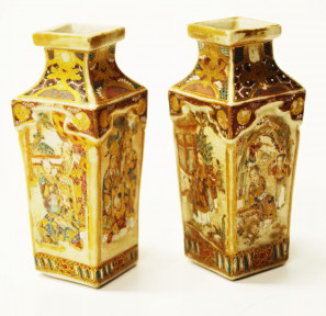 Lot #11 - Pair Satsuma Japan Posy Vases