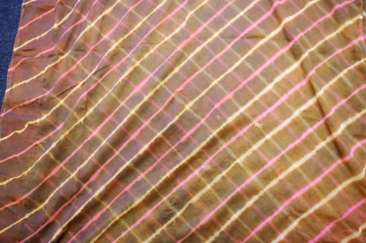 Lot Description:Indian silk chiffon Leheriya-patterned sari