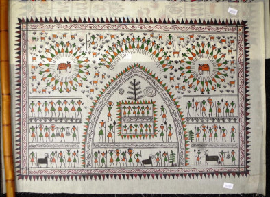 both depicting Saora tribal imagery, both 54cm X 40cm approx -