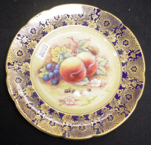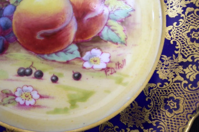hand painted fruit decoration signed by F.D. HALL, marked to base, (diameter 15.5cm approx). -