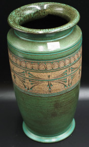 Lot Description:Australian Peter Tappin green glaze pottery vase