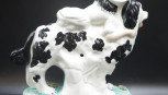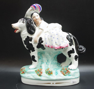 Lot Description:Staffordshire figure of a girl on a spaniel dog