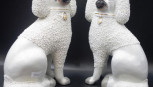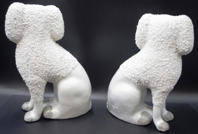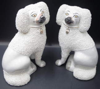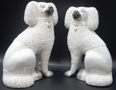 Lot Description:Pair of antique Staffordshire seated spaniels