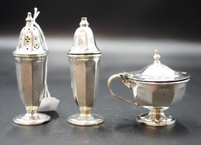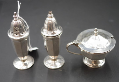Lot Description:Victorian three piece sterling silver cruet set