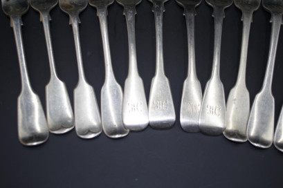 a total of 12 entree forks, including hallmarks for George III dates, and Victorian dates, various makers, and monograms, (length 17cm each; weight 514grams approx, total) -