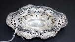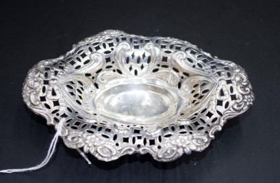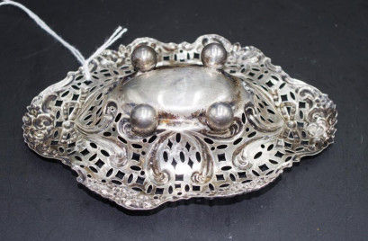 Lot #1315 - Sterling silver pierced dish on four ball feet