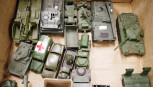 Twenty one army vehicles in total comprising of tanks,semi trailers,army personal and missile service platform -