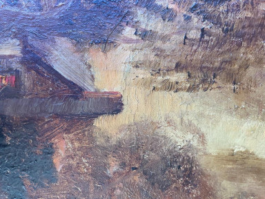 Notes:Condition: The painting is housed in its original frame and supported on its original stretcher. There is no visible significant paint loss. Sporadic discolouration/dirt marks throughout the image. There is paint expansion/cracking throughout the image. Most noticeable in the central area. This lot is in good original condition.