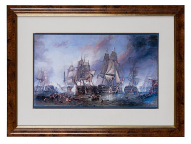 Lot Description:A framed photo lithographic print of the Battle of Trafalgar, after the original by Clarkson Frederick Stanfield (1793ñ1867)