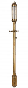 Lot Description:A brass and mercury gimble and stick marine barometer, Portuguese 19th century