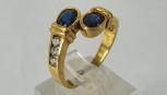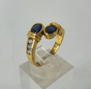 two sapphires and six diamonds. Size N. Weight 3.6g. -