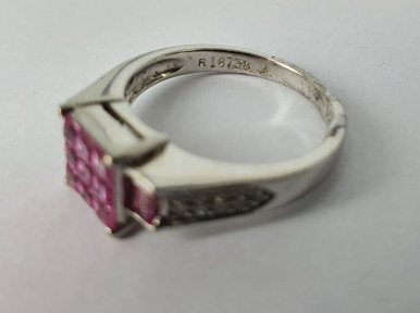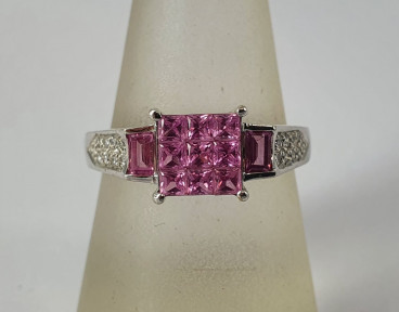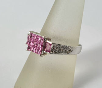 Lot Description:A Pink Sapphire Diamond and 18ct White Gold Ring