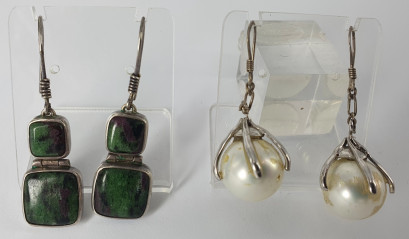 Lot Description:Two Pairs of Sterling Silver Drop Earrings