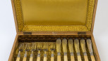 Lot #56 - Antique English fish cutlery in walnut canteen, 19th century