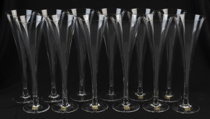 Lot Description:A set of twelve Continental glass champagne flutes, 20th century