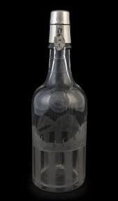 Lot Description:An antique decanter with fine wheel-cut decoration and silver top with lock, 19th/20th century