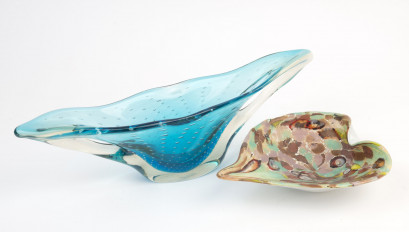 Lot Description:A blue Murano glass console bowl, together with a multi-coloured Murano glass dish, circa 1960