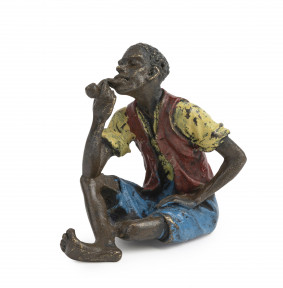 Lot Description:FRANZ BERGMANN Austrian cold painted bronze statue of a seated Nubian boy, early 20th century