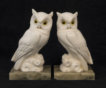 Lot Description:An Italian pair of owl bookends, resin and alabaster, mid to late 20th century