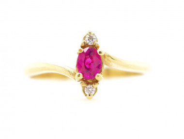 Lot Description:Natural ruby & diamond set 18ct yellow gold ring