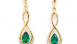 Lot Description:Synthetic emerald & 9ct yellow gold drop earrings